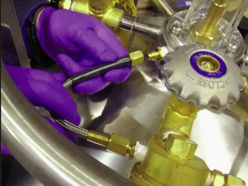 更換閥門時,必須確保液氮罐內(nèi)部沒有任何殘留的液氮。首先關(guān)閉液氮罐的主要閥門,并將液氮罐與外部的液氮供給系統(tǒng)斷開。為了避免液氮?dú)埩簦脤⒐摅w內(nèi)的氣體完全排放,減少可能的危險。